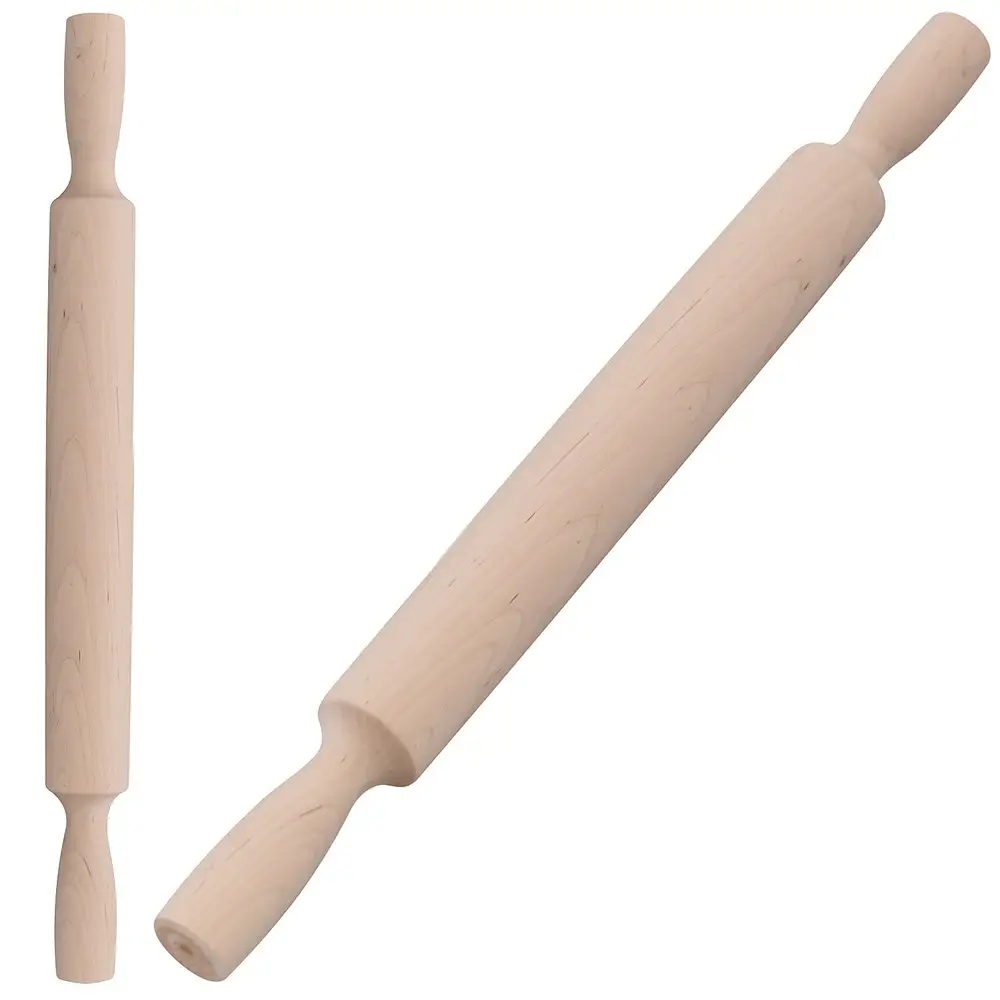 Универсальная классическая деревянная скалка с ручками для раскатки и приготовления теста сделает этот процесс приятным и увлекательным. Изготовлено: дерево (береза). Размер: общая длина 40 см, длина рабочей части 23,5 см