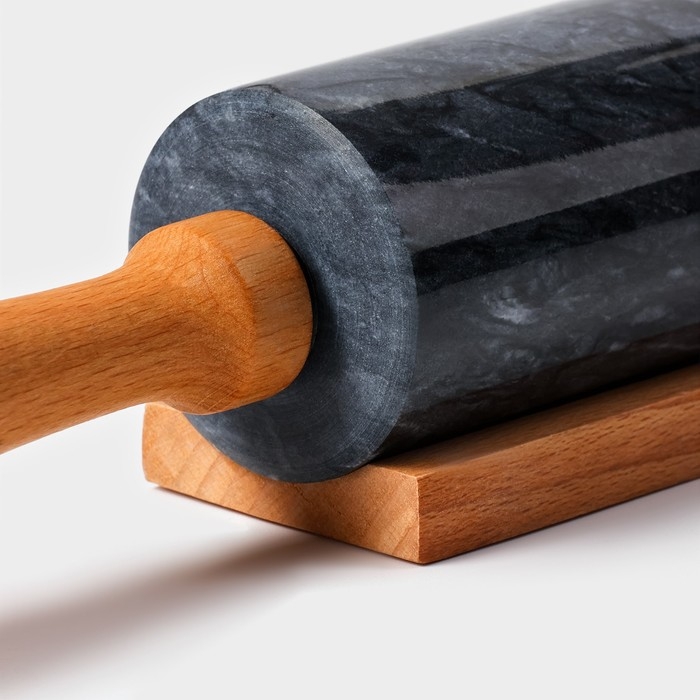 Скалка из мрамора Magistro, с подставкой, 45×5 см, цвет чёрный