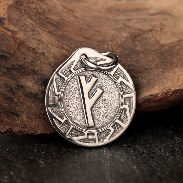 Скандинавский оберег "Руна Феху в солнечном круге", 5 г, 20х22 мм