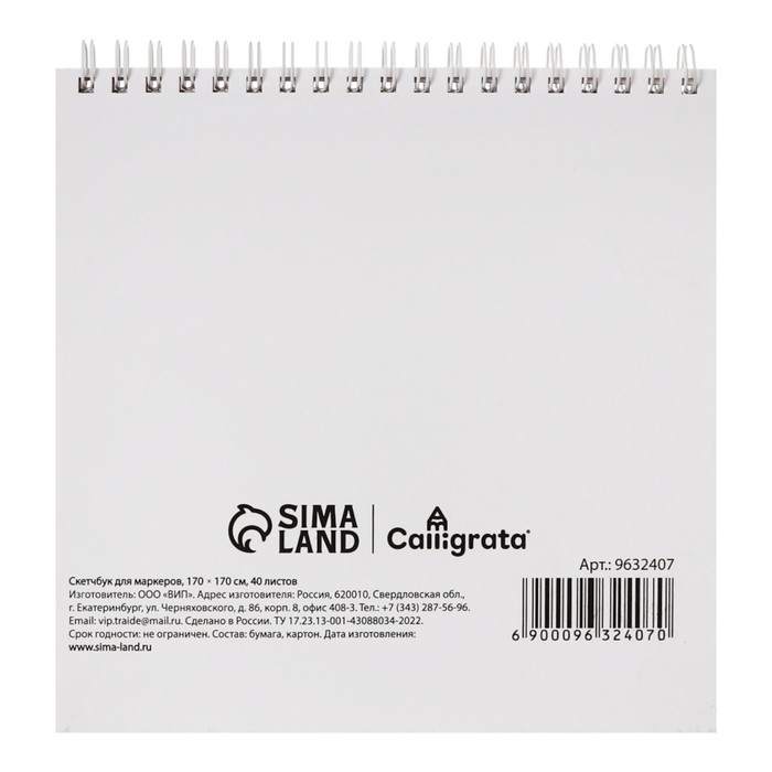 Скетчбук для маркеров 170х170 40л 70г/м2