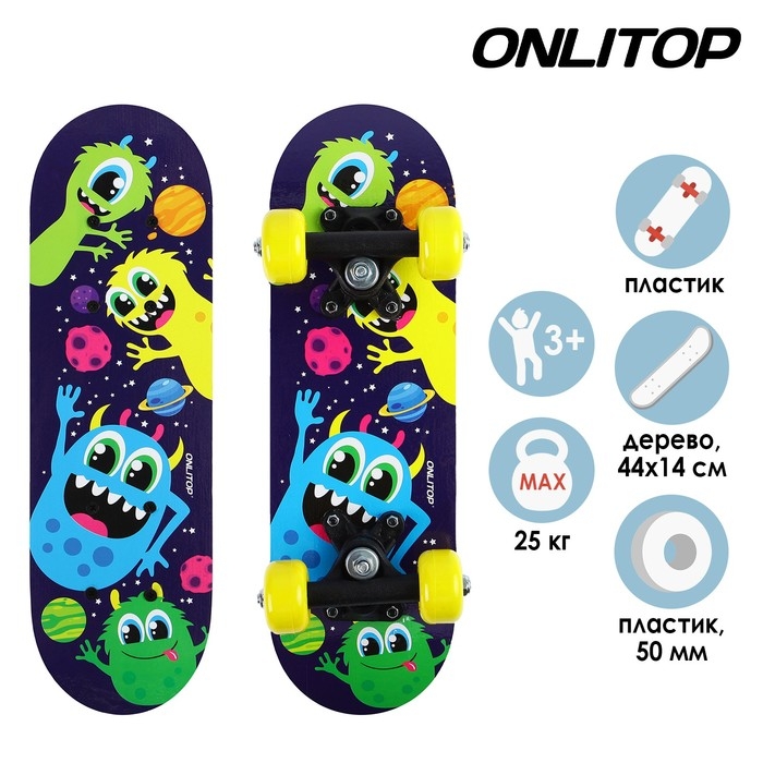 Скейтборд детский ONLITOP, 44х14 см, колёса PVC 50 мм, пластиковая рама