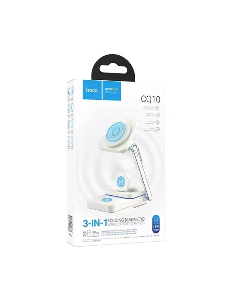 Hoco CQ10 3 в 1 — это идеальный спутник для современных пользователей, которые ценят функциональность и удобство. Это устройство обеспечивает беспроводную зарядку для трех типов гаджетов: мобильных телефонов, наушников и смарт-часов. С его помощью вы сможете быстро и эффективно подзарядить свои устройства без лишних проводов.