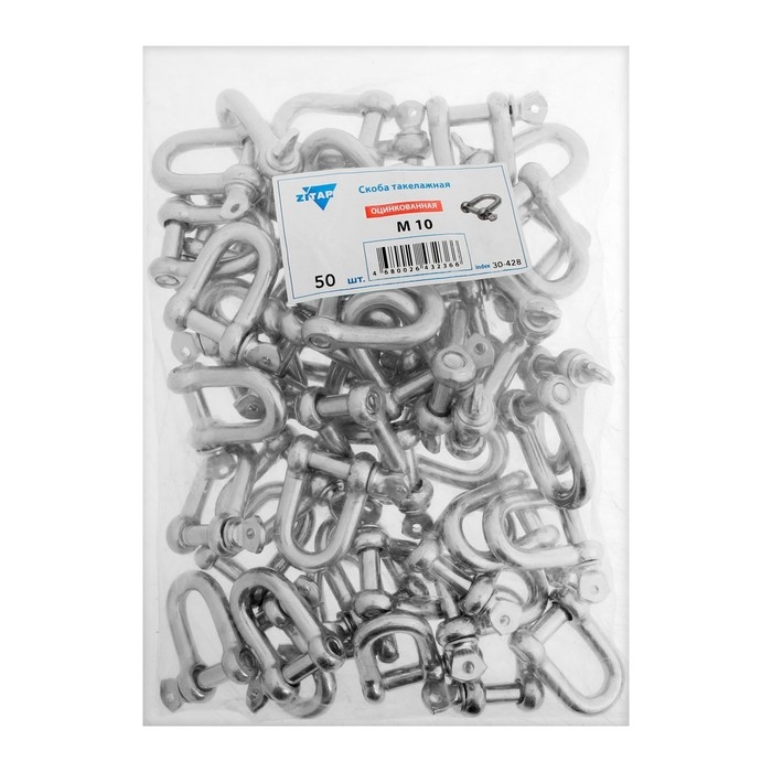 Скоба такелажная, тип прямой, 10 мм, цинк, 50 шт