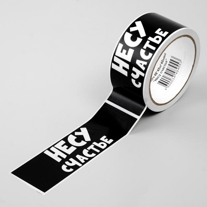 Клейкая лента с логотипом "Несу счастье" подарит настроение и украсит любой подарок.