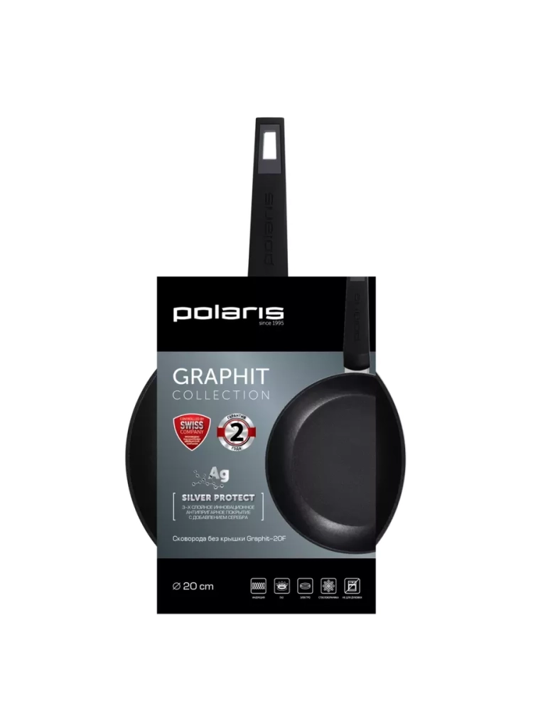 Polaris Graphit-20F - это универсальная сковорода, которая создана в соответствии с последними тенденциями и требованиями к профессиональной современной посуде: