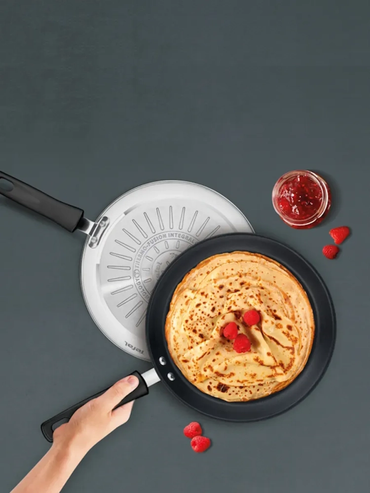 Благодаря сковороде для блинов Duetto+ из нержавеющей стали вы будете меньше времени проводить на кухне и больше - с любимыми людьми! Эта прочная сковорода, изготовленная из высококачественной нержавеющей стали с заклепочной ручкой, рассчитанной на длительный срок службы, идеально подходит для приготовления любых блюд - от вкусных омлетов до сочных котлет для бургеров, приготовленных на гриле. Долговечное антипригарное покрытие и удобный индикатор нагрева гарантируют безупречный результат при любом приготовлении. С Duetto+ готовьте вкусные блюда для всей семьи изо дня в день!
