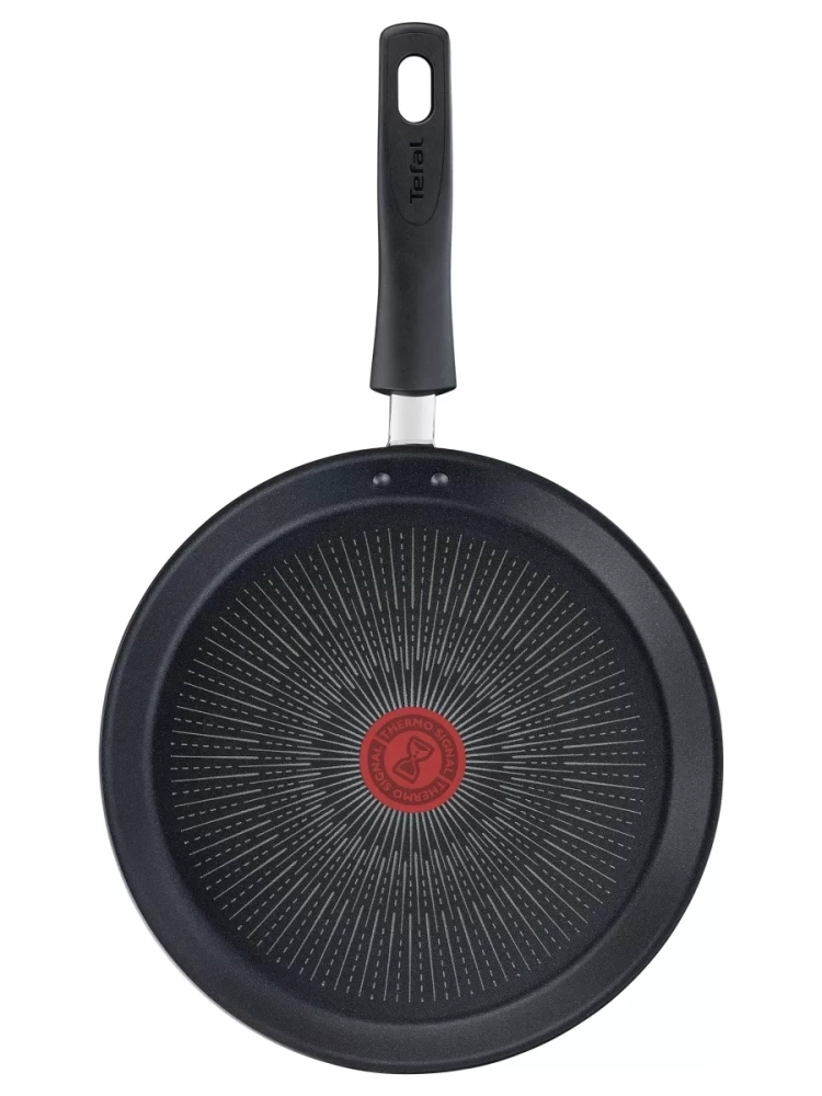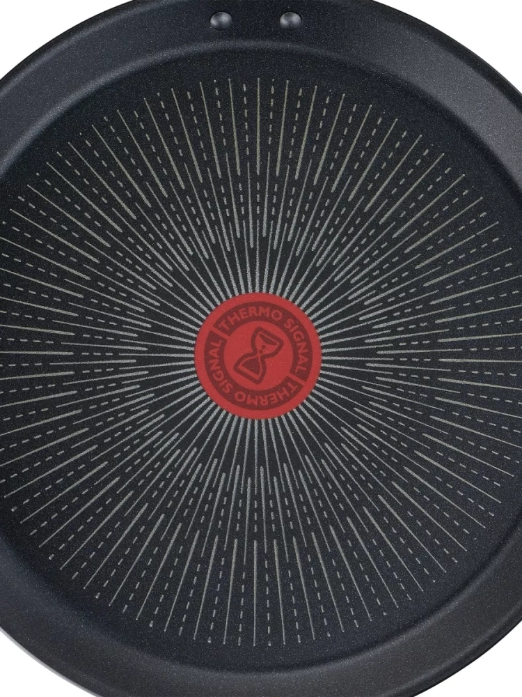 Инновационное антипригарное покрытие Titanium Anti-Scratch сочетает в себе потрясающую устойчивость к царапинам и износостойкость даже при использовании металлических аксессуаров. Кроме того, вы сможете создавать сочные и аппетитные блюда легко и быстро без добавления масла и кулинарного жира. Большая сковородка с ручкой оснащена специальным индикатором Thermo-Signal, который подскажет оптимальную температуру для начала приготовления, гарантируя идеальную текстуру, красивый цвет и неповторимый аромат. Широкая индукционная сетка и толстое дно, разработанное по технологии Thermo-Fusion+ обеспечивает быстрый нагрев и равномерное распределение тепла по всей посуде. К тому же, алюминиевая сковорода Тефаль имеет низкие борта, которые идеально подойдут для комфортного приготовления золотистых оладий и пышных панкейков, а также ее можно использовать на газовых, электрических, стеклокерамических и индукционных плитах. Благодаря внутреннему и внешнему антипригарному покрытию сковороду для жарки легко использовать день за днем и мыть после каждого использования.