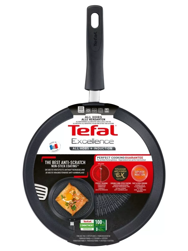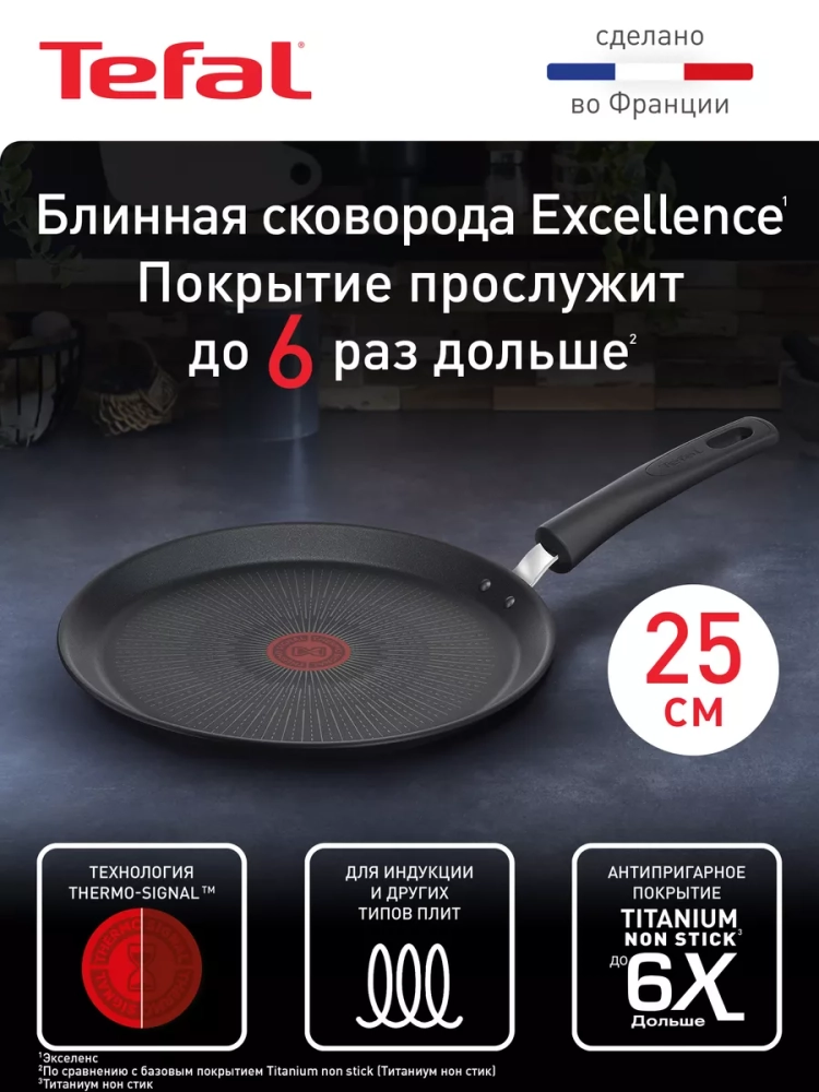 Блинная сковорода Tefal Excellence 25 см G2693872 выдерживает самые экстремальные способы приготовления и помогает создавать кулинарные шедевры на вашей кухне.