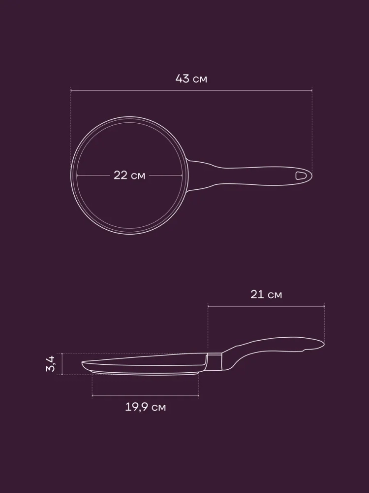 Благодаря уникальной форме посуды вы без труда сможете переворачивать блинчики и снимать их со сковороды во время жарки идеально ровными и без лишних усилий.