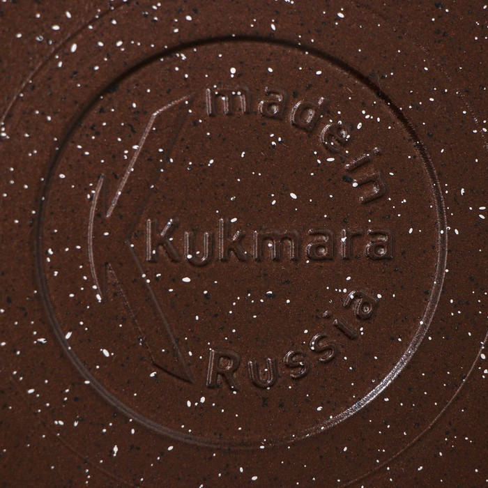 Посуда Kukmara «Мраморная» изготовлена из литого алюминия и покрыта инновационным антипригарным мраморным покрытием на водной основе, усиленным сверхтвёрдыми частицами минералов.