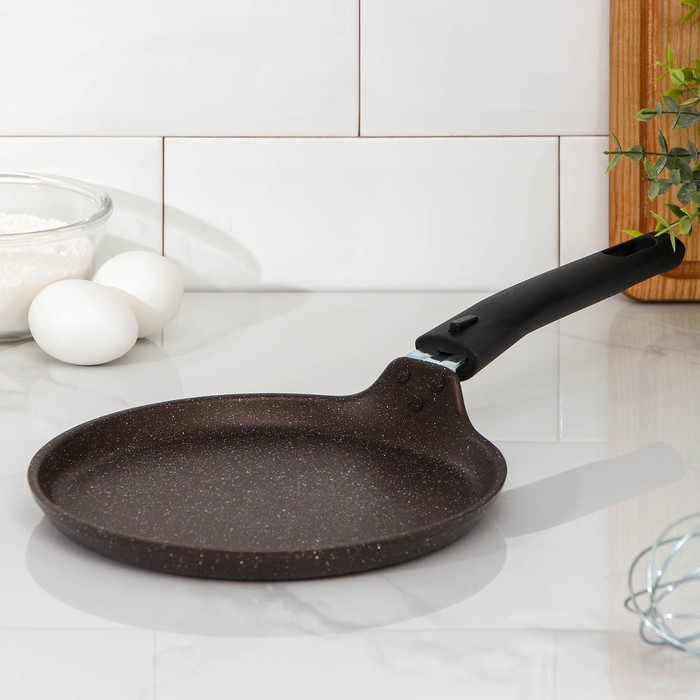 Сковорода блинная , d=20 см, пластиковая ручка, антипригарное покрытие, цвет кофейный мрамор