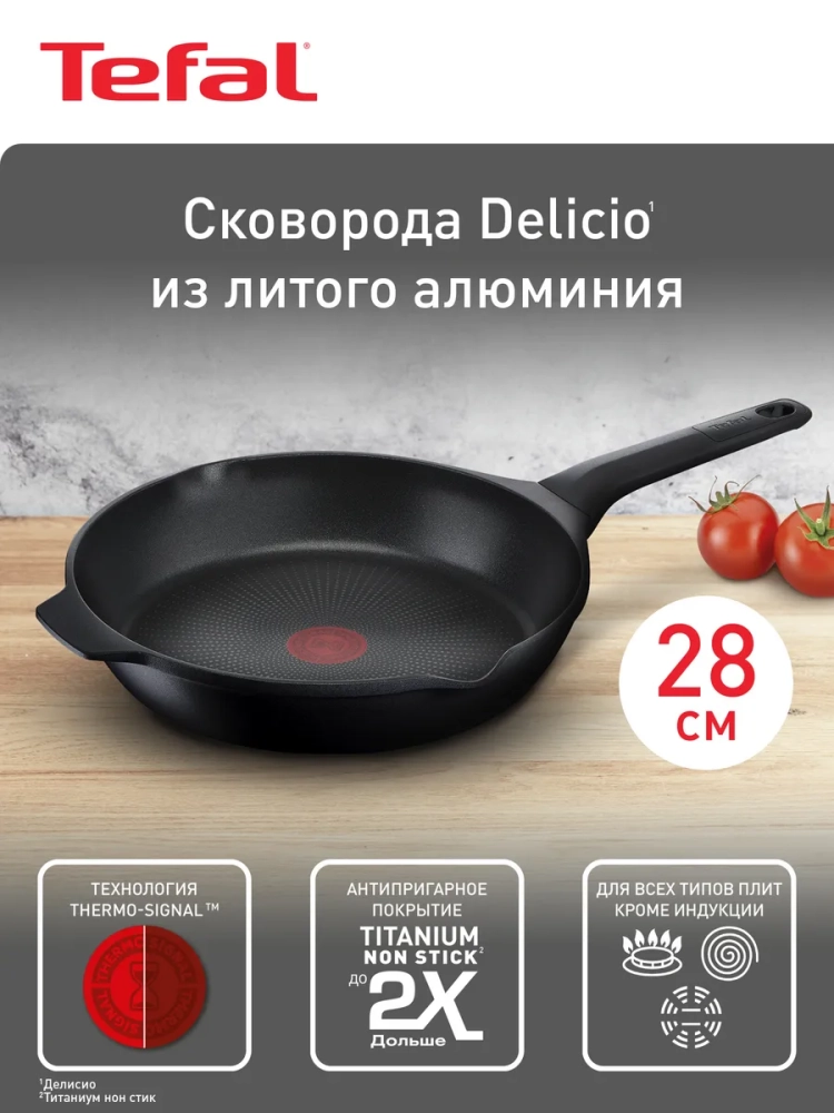 Сковорода Tefal Delicio E2320674 28 см - идеальный выбор для приготовления вкусных и ароматных блюд.