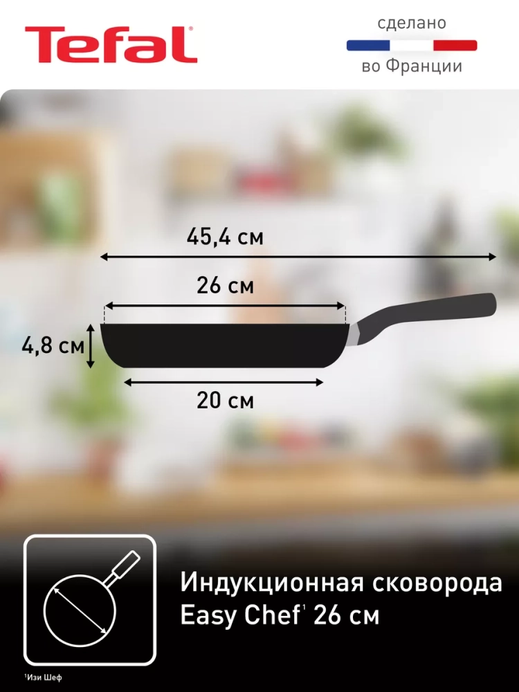 Сковорода Tefal Easy Chef 26 см G2700572 - это идеальное решение для легкого и удобного приготовления разнообразных блюд.
