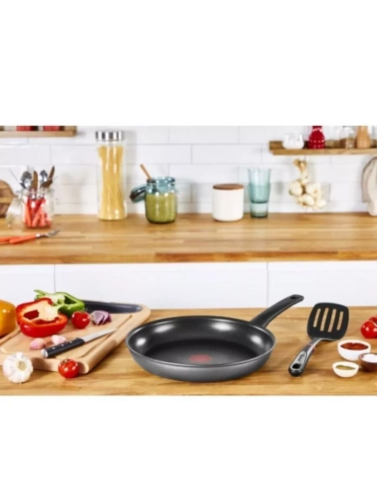 Посуда для дома значительно упрощает процесс приготовления любимой пищи благодаря ряду инновационных решений. Прочное антипригарное покрытие с добавлением титана гарантирует долговечность и удобство в использовании, сохраняя свои свойства в 2 раза дольше по сравнению с другими покрытиями Тефаль. Также металлическая сковородка с ручкой, изготовленная из алюминия, оснащена технологией Thermo-Fusion, обеспечивающей быстрый и равномерный нагрев, а индикатор Thermo-Signal подскажет, когда посуда для кухни достигнет оптимальной температуры для начала готовки. Кроме того, кухонный инвентарь выполнен в продуманном дизайне для удобной подачи блюд. А также, глубокая сковорода для жарки безопасна для здоровья, она не содержит PFOA, свинца и кадмия, и подходит для всех типов плит, включая индукционные.