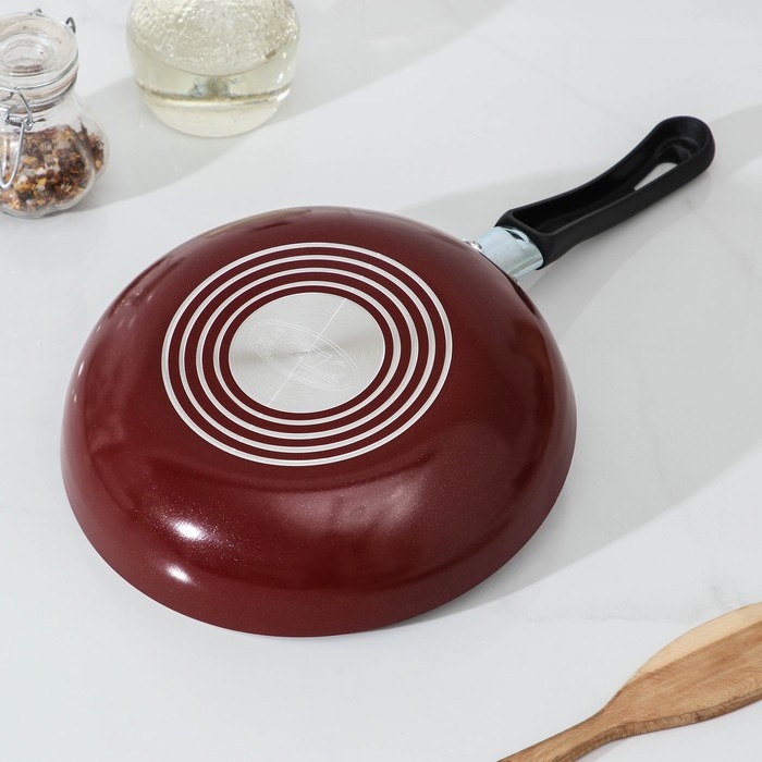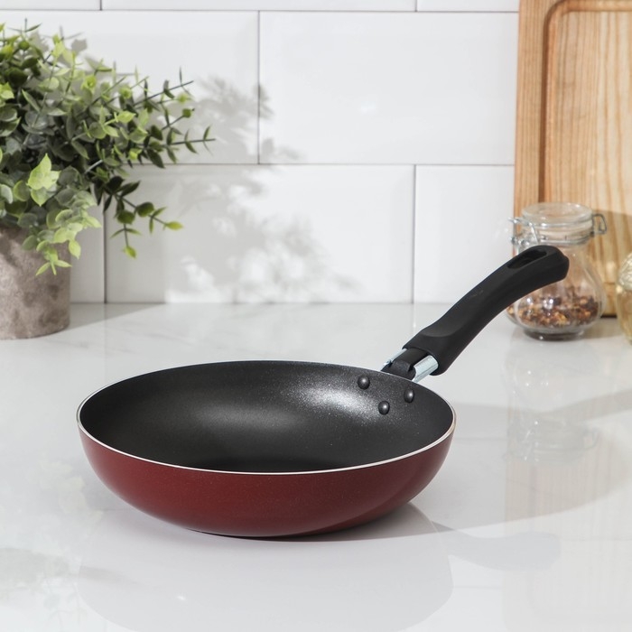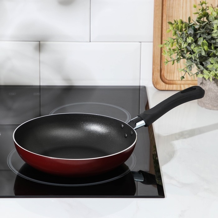 Сковорода Доляна Promo, d=22 см, h= 5 см, пластиковая ручка, антипригарное покрытие, цвет бордовый