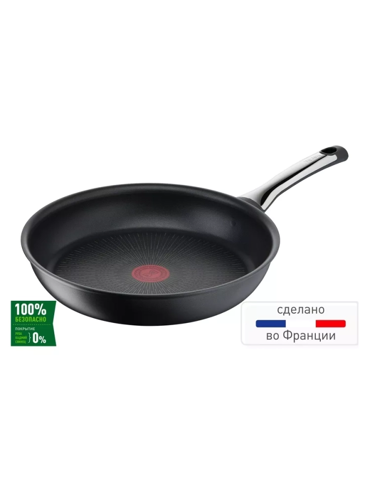 Инновационное антипригарное покрытие Titanium Anti-Scratch сочетает в себе потрясающую устойчивость к царапинам и износостойкость даже при использовании металлических аксессуаров во время готовки. Кроме того, вы сможете создавать сочные и аппетитные блюда легко и быстро без добавления масла и кулинарного жира. Большая сковородка оснащена специальным индикатором Thermo-Signal, который подскажет оптимальную температуру для начала приготовления пищи, гарантируя идеальную текстуру, красивый цвет и неповторимый аромат. Широкая индукционная сетка и толстое дно, разработанное по технологии Thermo-Fusion+ обеспечивает быстрый нагрев и равномерное распределение тепла по всей посуде. К тому же, алюминиевая сковорода Тефаль для жарки имеет высокие борта, которые идеально подойдут для комфортного приготовления больших порций завтраков и обедов на всю семью, а также ее можно использовать на газовых, электрических, стеклокерамических и индукционных плитах. Благодаря внутреннему и внешнему антипригарному покрытию глубокую сковороду легко использовать день за днем и мыть после каждого использования.