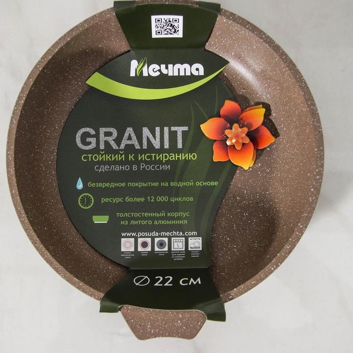Сковорода «Гранит Brown», d=22 см, пластиковая ручка, антипригарное покрытие, цвет коричневый