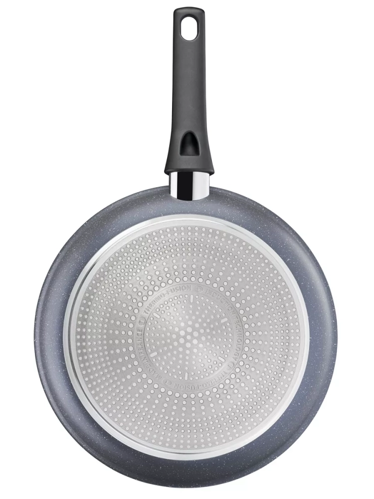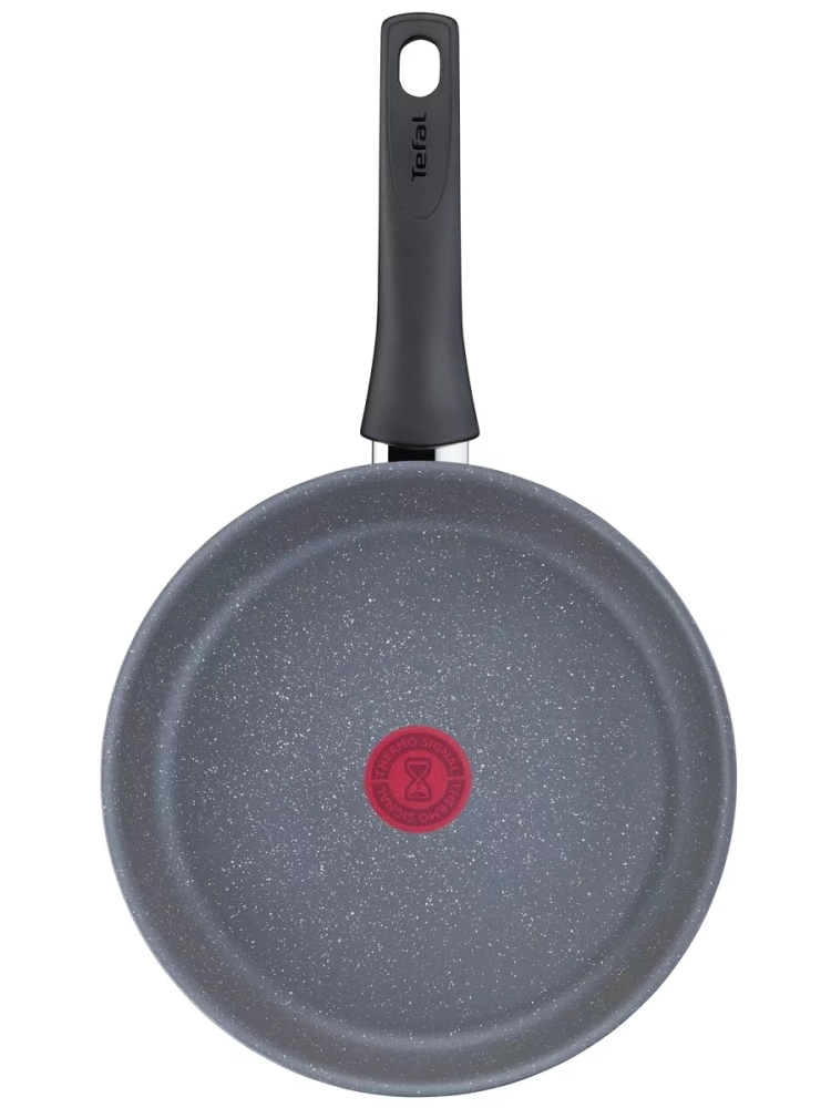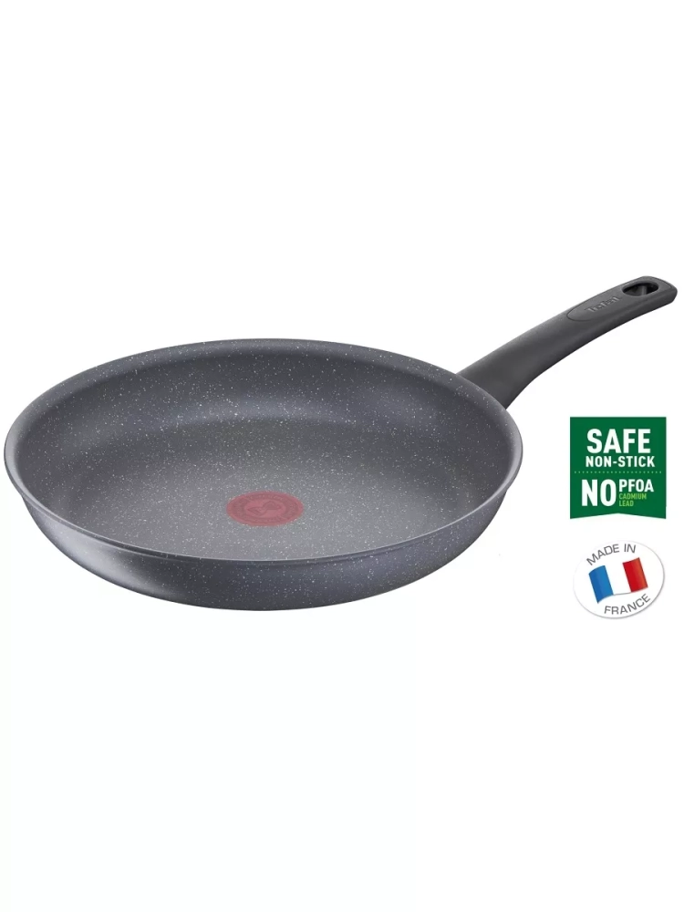 Главное преимущество сковороды из алюминия – антипригарное покрытие Mineralia+, усиленное минеральными частицами, что обеспечивает долговечность и превосходные антипригарные свойства, даже при жарке без масла, вы получите качественный результат. Кроме того, покрытие кухонного инвентаря абсолютно безопасно, так как производится без добавления PFOA, свинца и кадмия. Большая сковородка Тефаль оснащена инновационным индикатором температуры Thermo-Signal, который подскажет оптимальный момент для начала готовки, гарантируя идеальную текстуру и аппетитный внешний вид блюд, а индукционное дно Thermo-Fusion быстро и равномерно нагревает стенки по всей поверхности. Края посуды для дома имеют специальную форму для комфортного и точного слива лишней жидкости без брызг.
