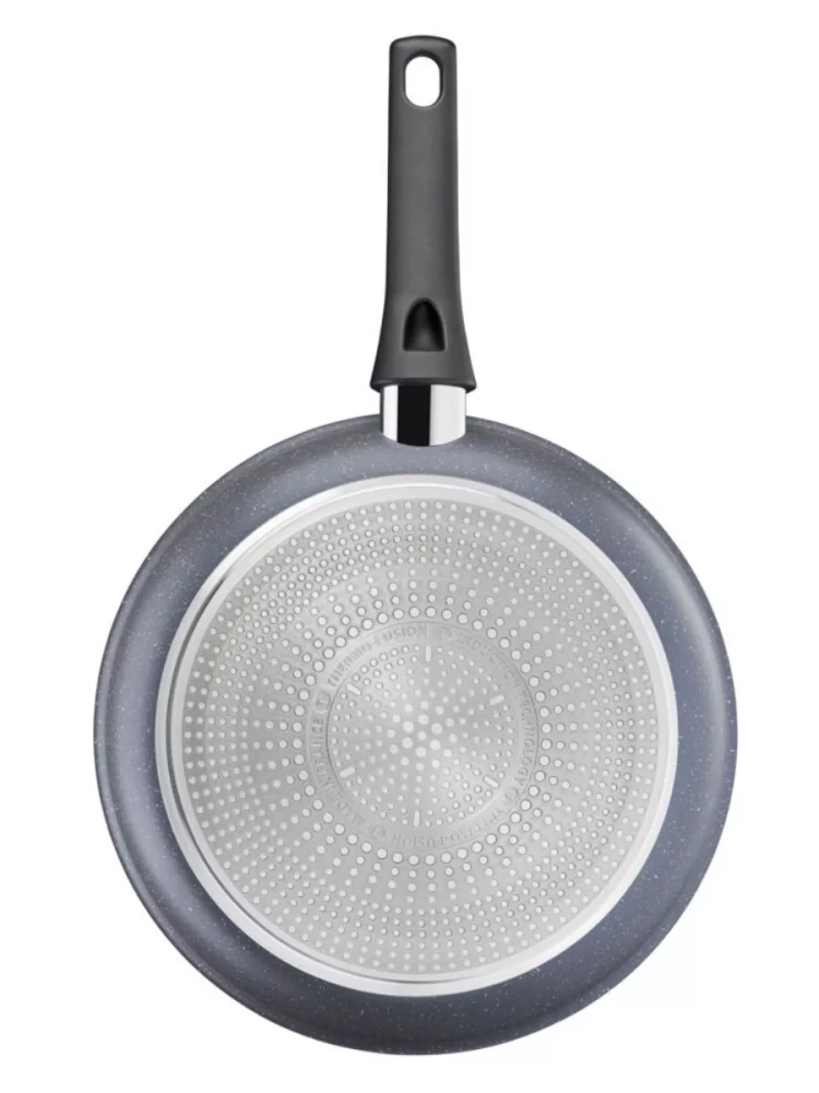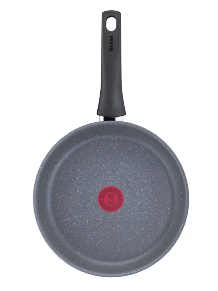 Главное преимущество сковороды из алюминия – антипригарное покрытие Mineralia+, усиленное минеральными частицами, что обеспечивает долговечность и превосходные антипригарные свойства, даже при жарке без масла, вы получите качественный результат. Кроме того, покрытие кухонного инвентаря абсолютно безопасно, так как производится без добавления PFOA, свинца и кадмия. Большая сковородка Тефаль оснащена инновационным индикатором температуры Thermo-Signal, который подскажет оптимальный момент для начала готовки, гарантируя идеальную текстуру и аппетитный внешний вид блюд, а индукционное дно Thermo-Fusion быстро и равномерно нагревает стенки по всей поверхности. Края посуды для дома имеют специальную форму для комфортного и точного слива лишней жидкости без брызг.