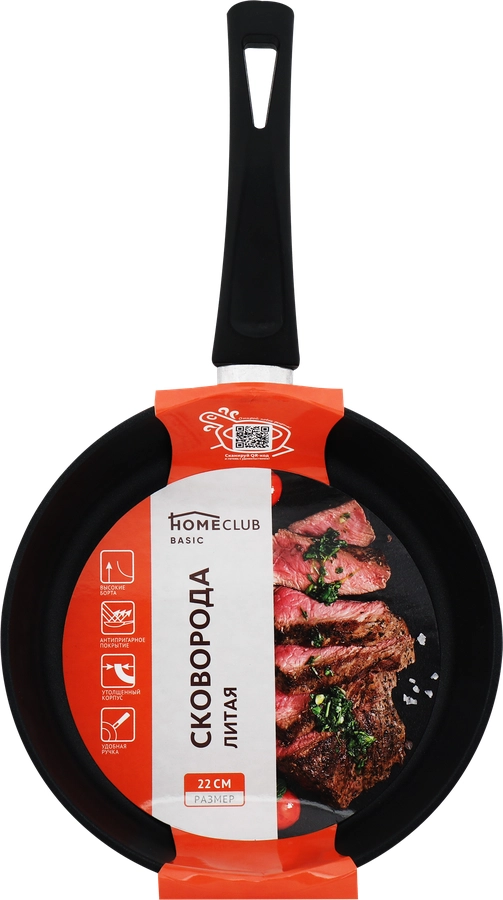 Сковорода HOMECLUB Basic 22см литая, ручка soft-touch
