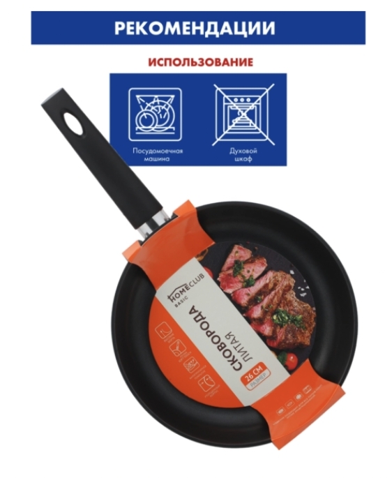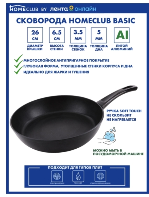 Сковорода HOMECLUB Basic 26см литая, ручка soft-touch