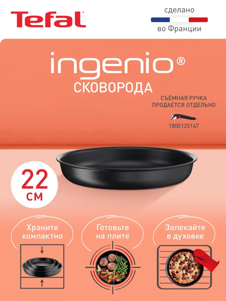 Кухонный инвентарь спроектирован и произведен во Франции в соответствии с высочайшими стандартами качества и в рамках нашего обязательства по производству качественной и безопасной посуды мы создаем антипригарное покрытие без использования PFOA, свинца и кадмия.