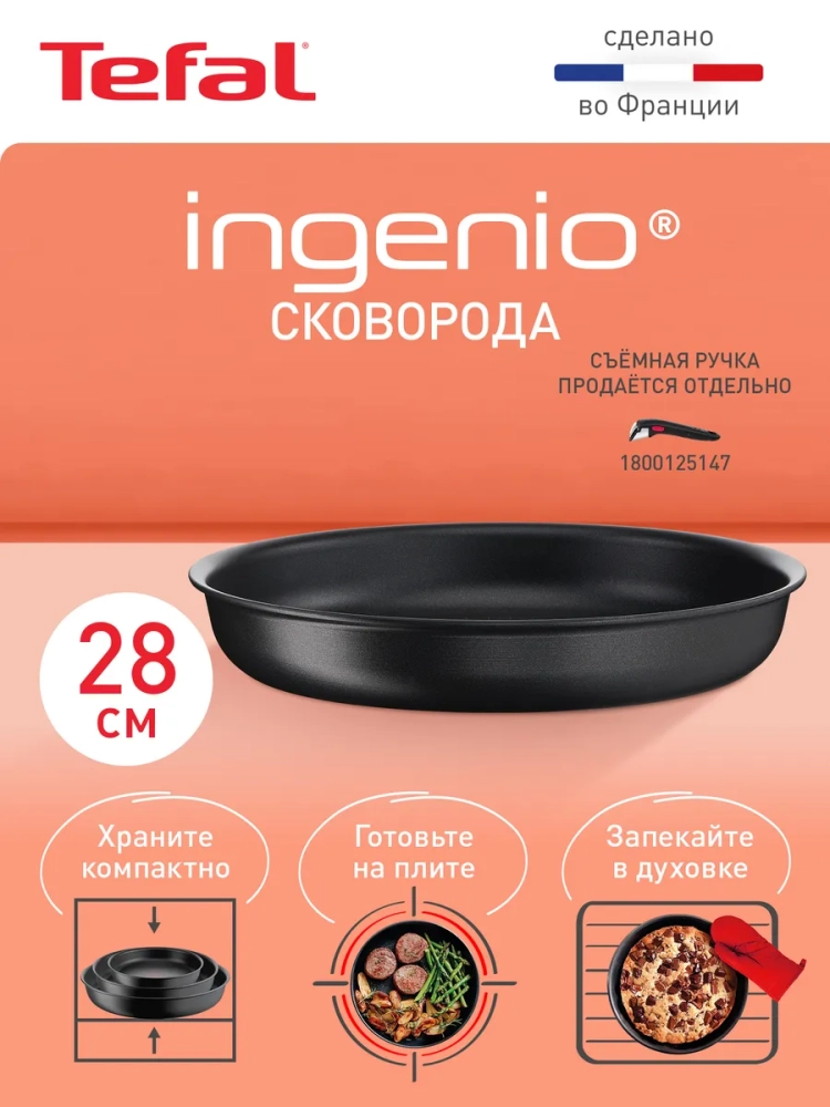 Сковорода Tefal Ingenio Unlimited 28 см L7630632 сделает процесс приготовления пищи дома максимально легким и удобным.