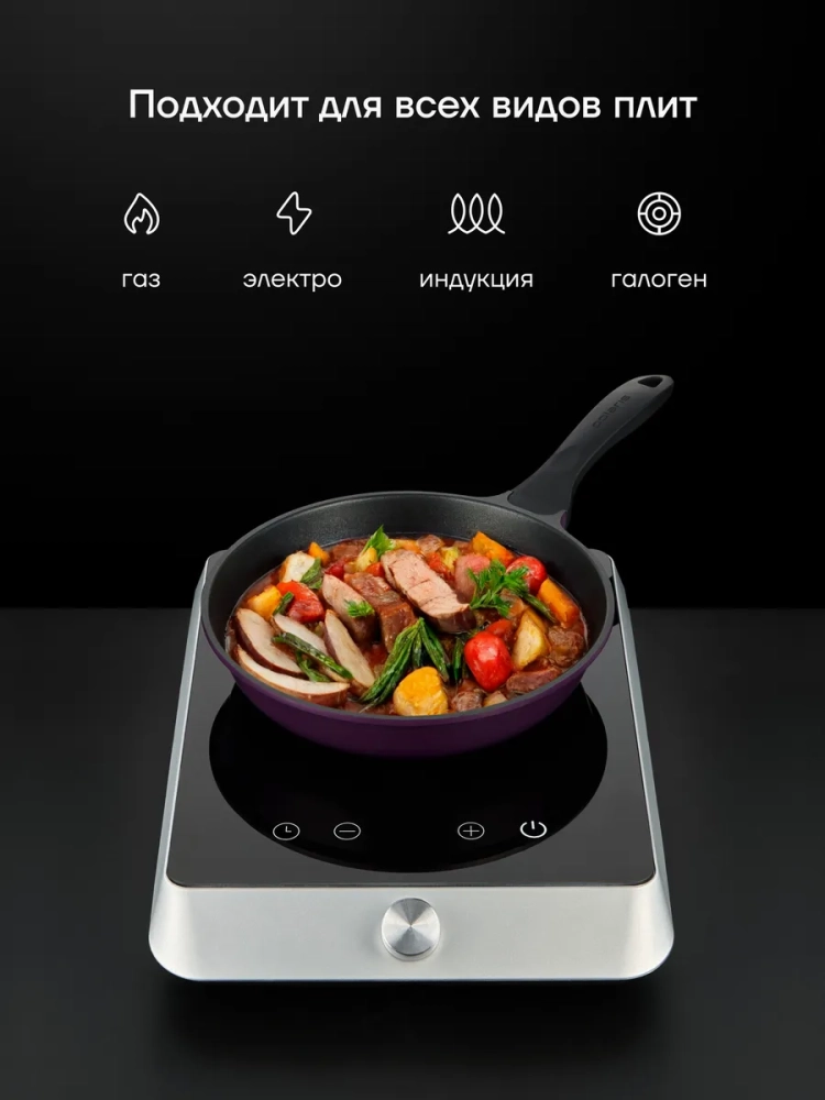 Сковородка выполнена из литого алюминия с 3-х слойным антипригарным покрытием ECO SHELL-3X, обеспечивающим равномерное распределение тепла и высокую прочность посуды. Благодаря этому продукты готовятся быстро и не пригорают во время жарки, что позволяет сохранить их полезные свойства и вкус. Сочное мясо, идеально прожаренные дольки картофеля, румяная курочка и нежный омлет, чтобы вы ни выбрали, вы гарантированно получите кулинарный шедевр! Подходит для индукционных, газовых, электрических и керамических плит. Диаметр посуды 26 см, крышка в комплект не входит!