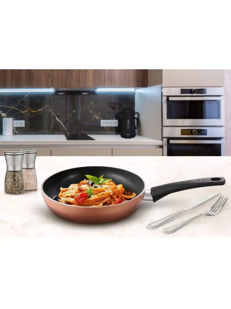 Также посуда для кухни оснащена индикатором Thermo-Spot, который становится полностью красным, когда сковородка Тефаль достигает идеальной температуры для начала приготовления. Благодаря толстому дну изделия, нагрев происходит быстро и равномерно, исключая появление холодных зон или излишне горячих участков. Усовершенствованное антипригарное покрытие на наружной и внутренней поверхности облегчает не только приготовление блюд, но и позволяет с легкостью очищать металлическую сковороду для индукции, не отнимая бесценные минуты. Кроме того, посуда для дома подходит для использования на газовых, электрических, стеклокерамических и индукционных плитах.