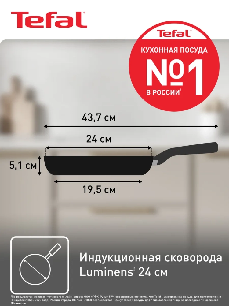 Сковорода Tefal Luminens G5 24 см 4202124 гарантирует идеальные результаты при готовке различных блюд.