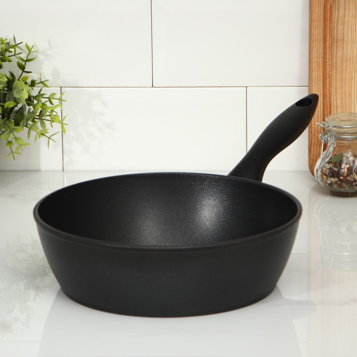 Сковорода «Надежда», d=24 см, h=7,4 см, пластиковая ручка, антипригарное покрытие, цвет чёрный