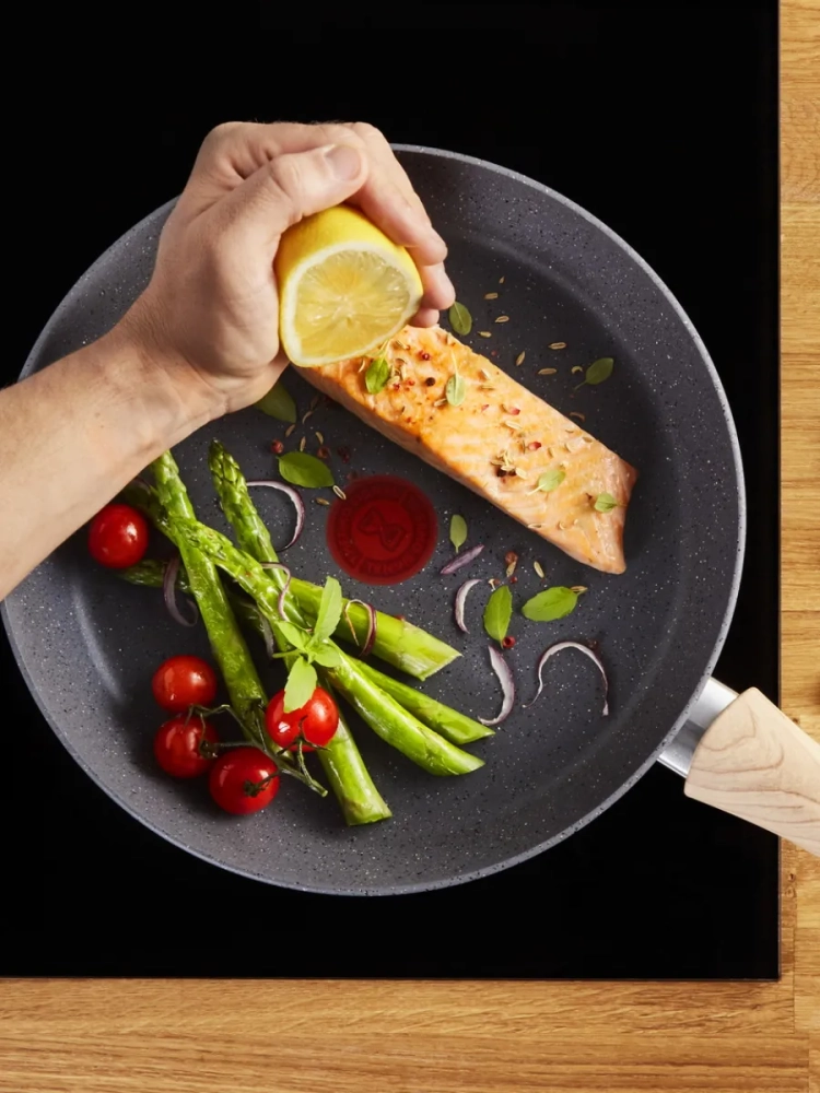 Алюминиевая сковорода спроектирована и произведена во Франции в соответствии с высочайшими стандартами качества и в рамках нашего обязательства по производству качественной и безопасной посуды мы создаем антипригарное покрытие без использования PFOA, свинца и кадмия.