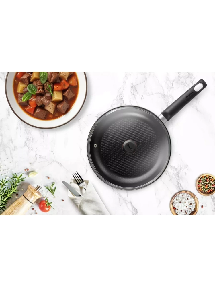Сковорода с крышкой Tefal Easy Plus 26 см 04237926 нагревается быстро и равномерно, поэтому все ингредиенты обжариваются одинаково. Многослойное антипригарное покрытие нанесено во Франции и усилено титановыми частицами, благодаря чему выдерживает интенсивное использование на любых видах плит, включая газовую, стеклокерамику и электроплиту. Индикатор Тефаль Thermo-Signal становится полностью красным, когда сковорода достигает идеальной температуры для начала приготовления, а толстое дно посуды нагревается быстро и равномерно – без образования холодных или перегретых участков, гарантируя превосходное качество обжарки, текстуру, цвет и вкус. Кроме того, алюминиевая сковорода оснащена внутренним и внешним антипригарным покрытием для комфортного приготовления и легкой очистки, что поможет экономить время и силы на семейные застолья в дни рождения, Новый год, масленицу и другие праздники. Сковорода подходит для использования на газовых, электрических и стеклокерамических варочных панелях. Порадуйте себя и своих близких полной коллекцией из серии Easy Plus: в коллекцию входят сковороды разных диаметров (22 см, 24 см, 26 см, 28 см), а также сковорода для блинов 22 см, сковорода вок 28 см. Приготовьте любимые блюда или попробуйте новые рецепты – посуда Easy Plus от Tefal поможет добиться аппетитного результата!