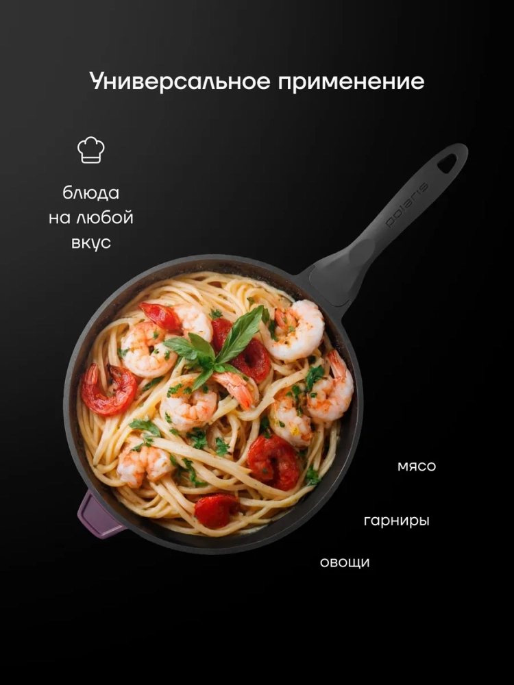 Сотейник выполнен из литого алюминия с 3-х слойным антипригарным покрытием ECO SHELL-3X, обеспечивающим равномерное распределение тепла и высокую прочность посуды. Благодаря этому продукты готовятся быстро и не пригорают во время жарки, что позволяет сохранить их полезные свойства и вкус. Сочное мясо, идеально прожаренные дольки картофеля, румяная курочка и нежный омлет, чтобы вы ни выбрали, вы гарантированно получите кулинарный шедевр! Подходит для индукционных, газовых, электрических и керамических плит. Диаметр посуды 28 см, крышка в комплекте. Алюминиевые изделия Поларис имеют термостойкое внешнее покрытие, которое обеспечивает надежность и износостойкость посуды на долгие годы и защищают ее от образования нагара, с которым можно столкнуться во время готовки на чугунной сковороде. Удобная бакелитовая ручка с покрытием Soft-touch не нагревается и не скользит во время приготовления пищи, в отличие от ручек из пластика и нержавеющей стали, что обеспечивает комфорт и безопасность при работе с посудой. Если для вас важна надежность и высокое качество посуды, то большая универсальная сковорода Polaris ECO collection-28ST - именно то, что нужно для вашей кухни.