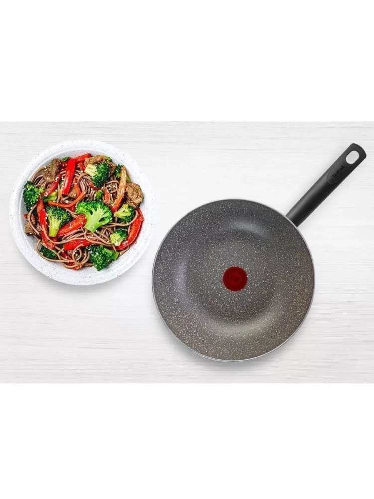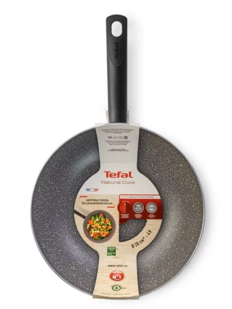 Глубокая сковорода-вок 28 см Tefal Natural Cook 04213628 — здоровые и полезные блюда без добавления лишнего масла! Антипригарное покрытие Mineralia создано специально для готовки с минимальным количеством масла, а уникальный индикатор Thermo-Signal вовремя подскажет, когда посуда нагрелась до оптимальной температуры для начала использования сковородки.