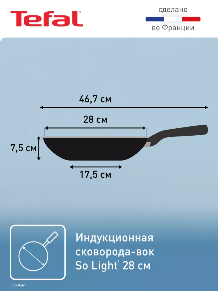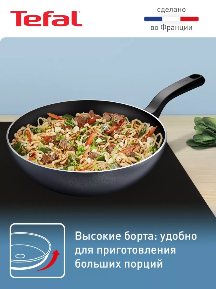 Готовьте аппетитные азиатские блюда с невероятной легкостью на сковороде вок Tefal So'Light 28 см H0561942.