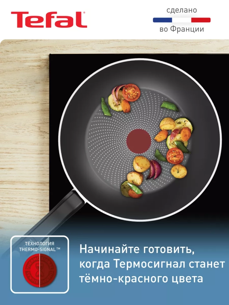 Кухонный инвентарь для приготовления пищи производится из высококачественных материалов с учетом многолетнего опыта французских экспертов. К тому же, посуда для дома создана в соответствии с высочайшими стандартами безопасности, поэтому антипригарное покрытие Tefal не содержит PFOA, свинец и кадмий.