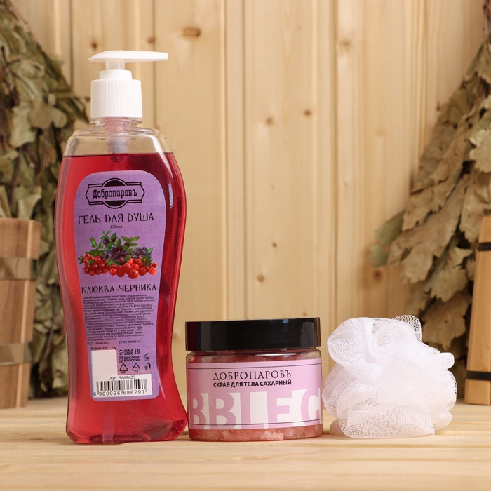Скраб "Бабл гам" 250 мл, гель для душа "Клюква-черника" 420 мл + мочалка