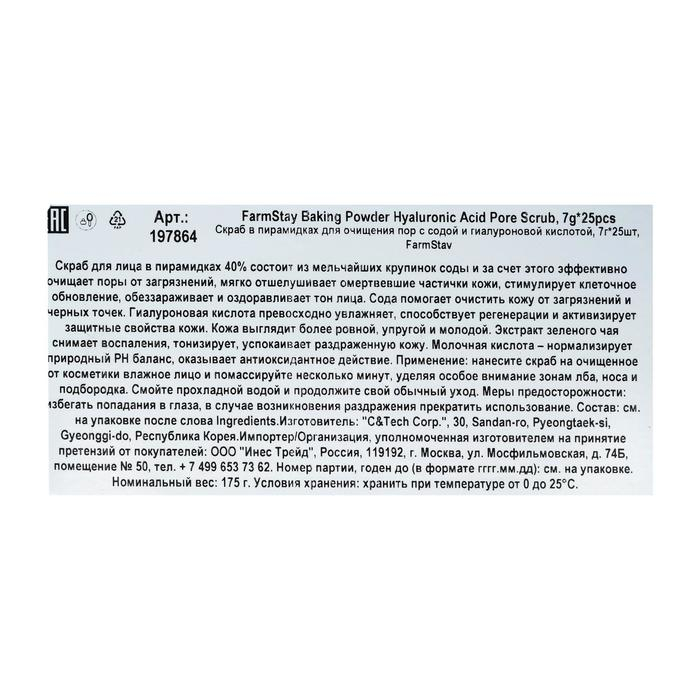 Скраб для лица FarmStay, для очищения пор, с содой и гиалуроновой кислотой, 25 шт. по 7 г
