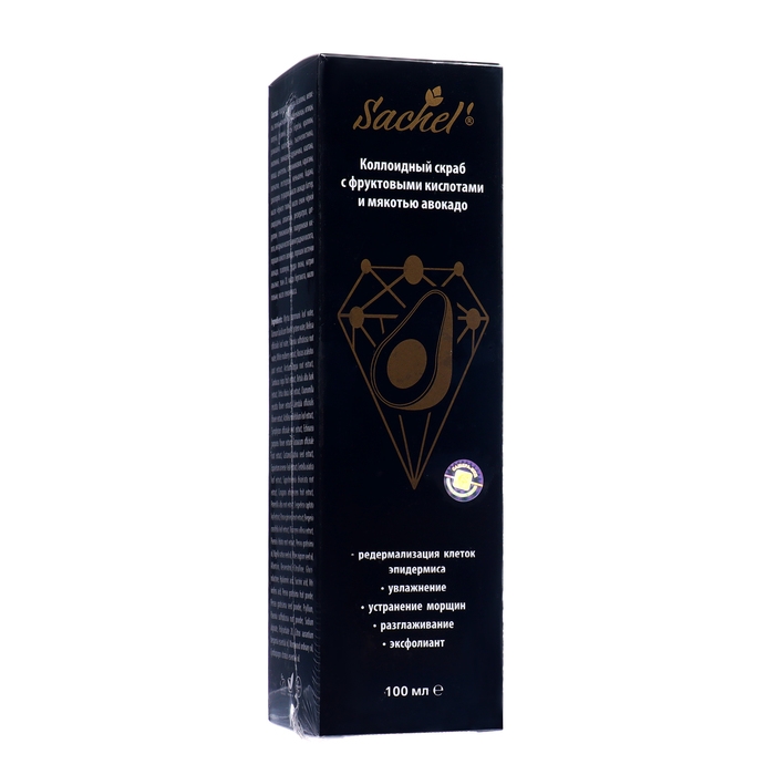 Скраб для лица коллоидный Sachel с фруктовыми кислотами и мякотью авокадо, 100 мл