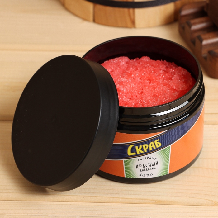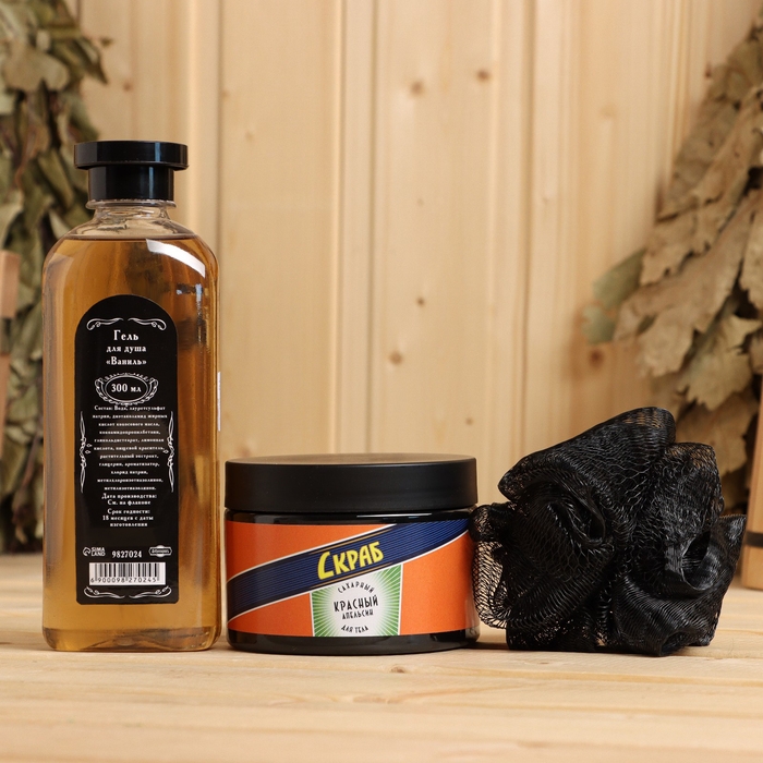 Скраб "Красный апельсин" 320 мл, гель для душа "Ваниль" 300 мл + мочалка