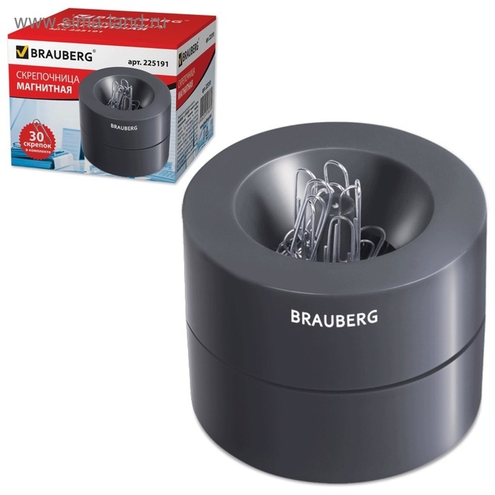 Магнитная скрепочница BRAUBERG предназначена для удобного хранения скрепок. Скрепочница цилиндрической формы выполнена из черного пластика. Поставляется с 30 никелированными скрепками 28 мм. Встроенный магнит предотвращает высыпание скрепок. Размер - 6x7,2х7,2 см.