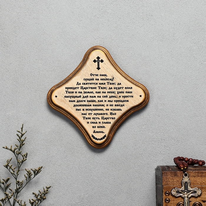 Скрижаль "Молитва Отче Наш", цвет палисандр, 17,5х17,5х2 см, берёза