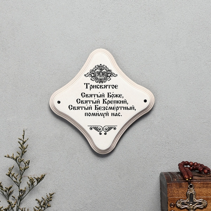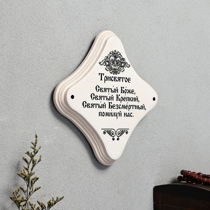 Скрижаль "Трисвятое", цвет жемчуг, 17,5х17,5х2 см, берёза