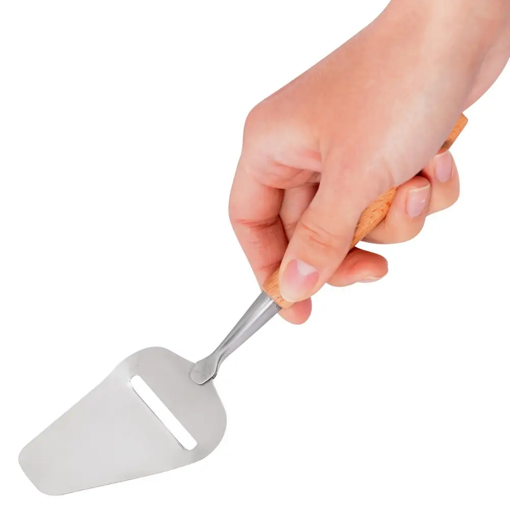 Сырная тарелка и аппетитные закуски из сыра, пожалуй, относятся к самым изысканным блюдам для фуршетов. Как здорово, что для приготовления и подачи существует специальный инструмент, с помощью которого закуски получатся как от шеф-повара! Слайсер используется для нарезки твердого и мягкого сыра. Эргономичная форма ручки и специальное лезвие делают этот процесс быстрым и удобным. Форма слайсера позволяет отрегулировать силу нажима и получить кусочки заданной толщины. Благодаря стильному дизайну ручки ножа он может стать отличным подарком ценителям сыров! Размер: общая длина 22 см. Изготовлено: рабочая часть из коррозионностойкой (нержавеющей) стали, ручка из дерева.