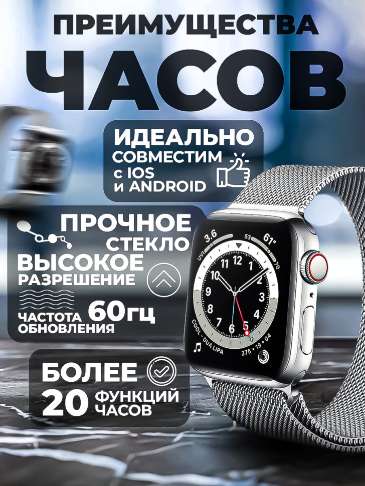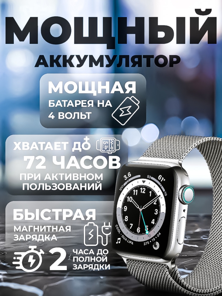 Смарт часы Smart Watch X8 PRO - это инновационный гаджет, который объединяет в себе функции умных часов и фитнес браслета. Они станут незаменимым аксессуаром для владельцев устройств на базе Android (андроид) и iOS (iphone). Взаимодействие с телефоном происходит через специальное приложение Wearfit Pro посредством bluetooth (блютуз) версии 5.0 и выше. Одной из ключевых особенностей смарт-часов является яркий безрамочный дисплей диагональю 45 мм, обеспечивающий насыщенные цвета и четкость изображения. Сенсорный экран имеет прочное акриловое стекло, что делает его надежным и долговечным. Смарт часы 8 серии предлагают множество функций для различных сфер жизни: от спорта и фитнеса до туризма и походов. С их помощью можно отслеживать количество пройденных шагов или расстояние, потребление калорий, измерять пульс и артериальное давление, проверять уровень кислорода в крови и даже анализировать качество сна. Они имеют оптимальный размер, стильно смотрятся на руке и подходят как для взрослых, так для детей и подростков. Мощная батарея высокой емкости позволяет активно использовать часы до 3-х дней. Для безопасной зарядки рекомендуется применение адаптера питания не более 2А, который покупается отдельно. Комплект поставки включает в себя беспроводную магнитную зарядку, три ремешка: 2 металлических типа миланская петля - для придания делового стиля, и силиконовый - для повседневного использования. Все это аккуратно упаковано в компактную коробку с ярким дизайном. Ручные цифровые часы имеют степень защиты IP67, которая уберегает от пыли и водных брызг. Но их нельзя использовать для глубоких погружений и длительного замачивания в воде, а также подвергать воздействию горячей воды и пара. Smart часы - это отличный подарок как для парня или девушки, так для ребенка и школьника.