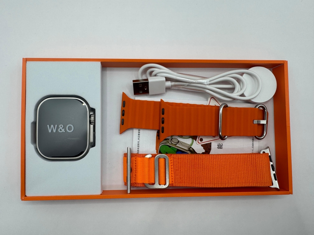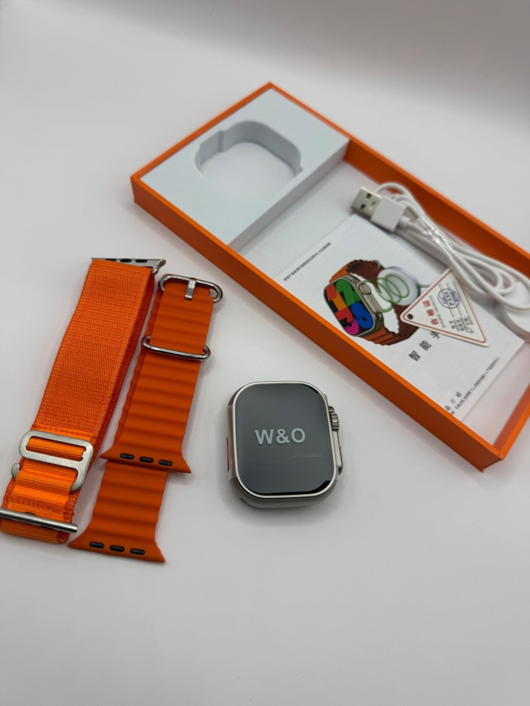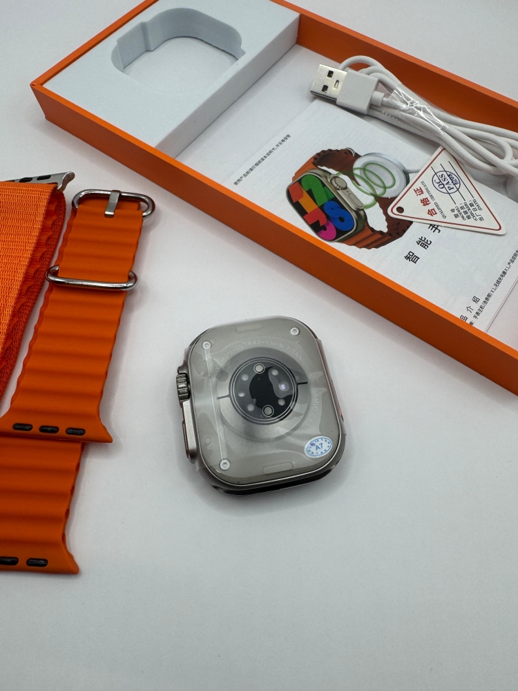 Боковая кнопка и функциональное колесо Digital Crown, а также "оранжевая" кнопка мультиспортивного режима на левой части корпуса (назначение кнопки можно настроить). Мультиспортивный режим, секундомер, калькулятор, allways on display, фонарик и другие новые функции. Смарт-часы X9+ Ultra 2 комплектуются двумя браслетами: силиконовым Ocean band и тканевым Альпийская петля.