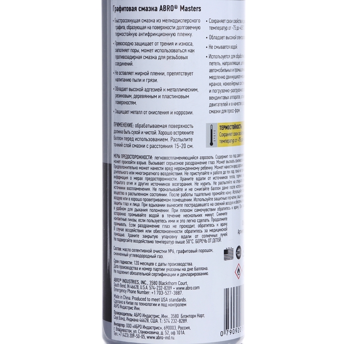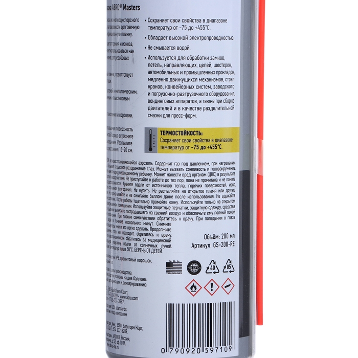Смазка-спрей графитовая ABRO MASTERS, 200 мл, GS-200-RE