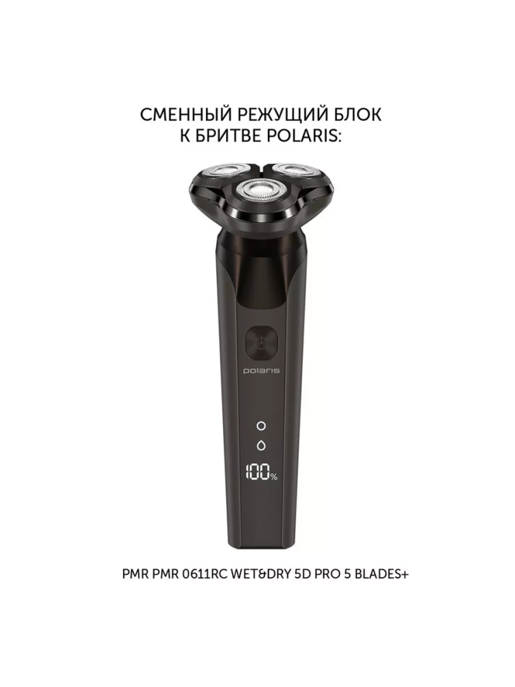 Режущий блок на магните PMRB 06 к бритве Polaris PMR 0611RC wet&dry 5D PRO 5 blades+. Сухое и влажное бритье. Промывка ножей под водой. Самостоятельная замена, удобство хранения.