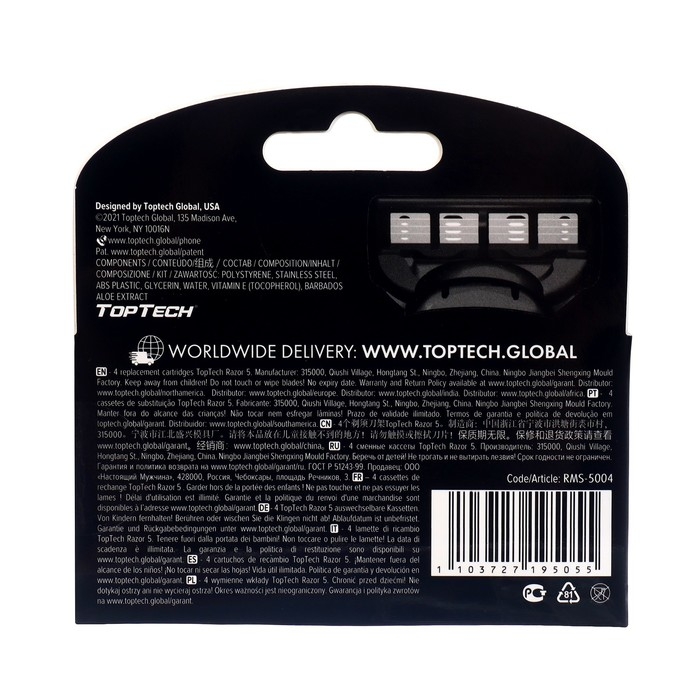 Сменные кассеты Toptech Razor 5, совместимые с Gillette Fusion 5, 4 шт. с 5 лезвиями